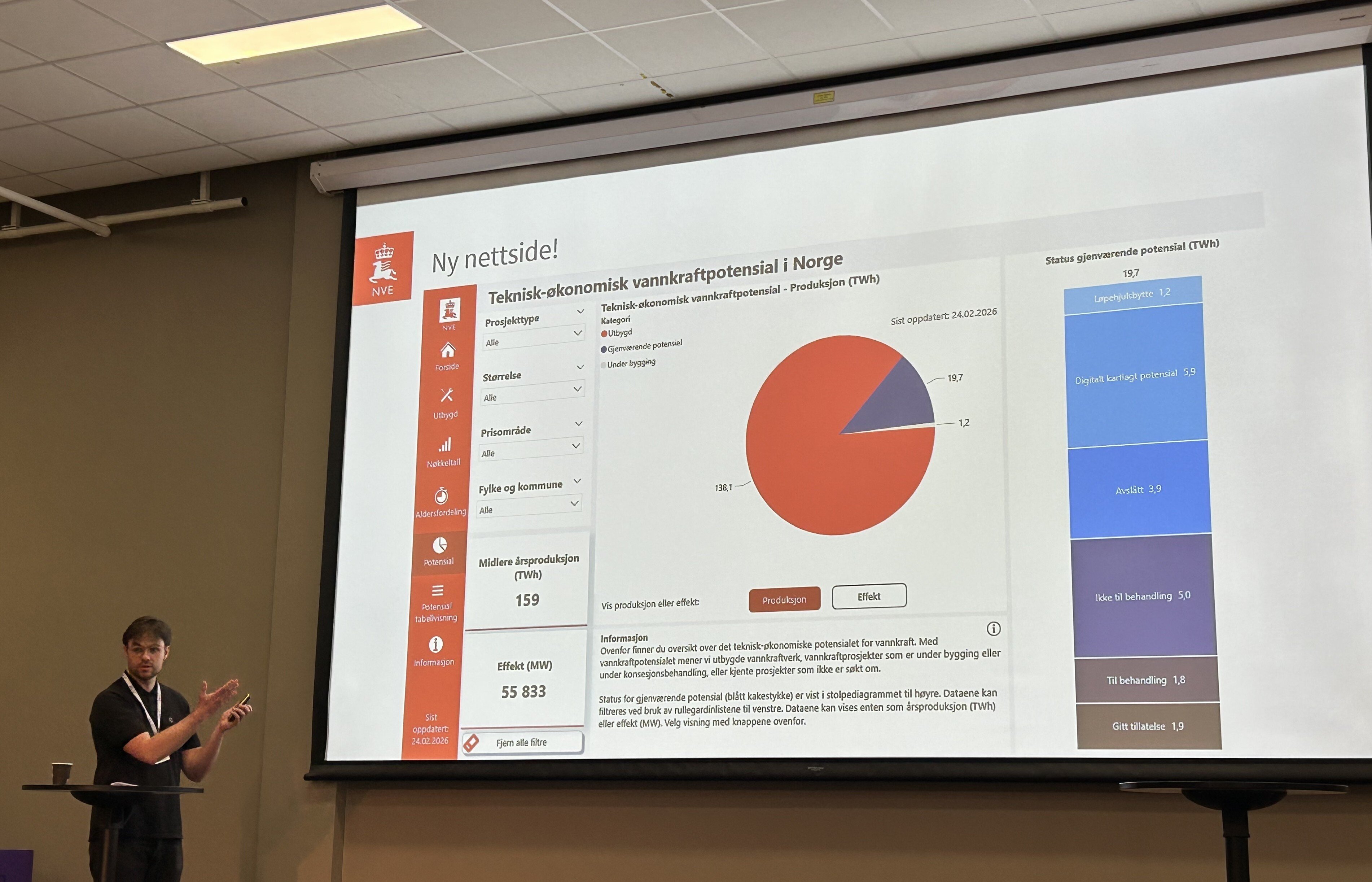 NYE TALL: Oscar Steen presenterte NVEs undersøkelse av teknisk-økonomiske potensial for ny vannkraft i Norge. Foto: Syver Lie Rønningen.